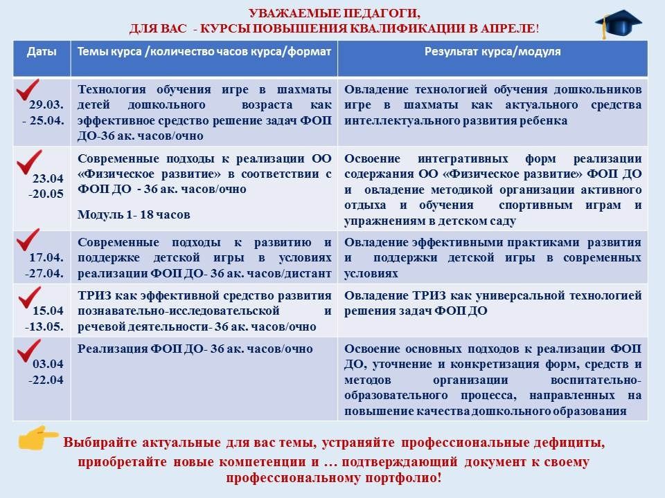 Планета Профи "Курсы повышения квалификации для педагогов в апреле"
