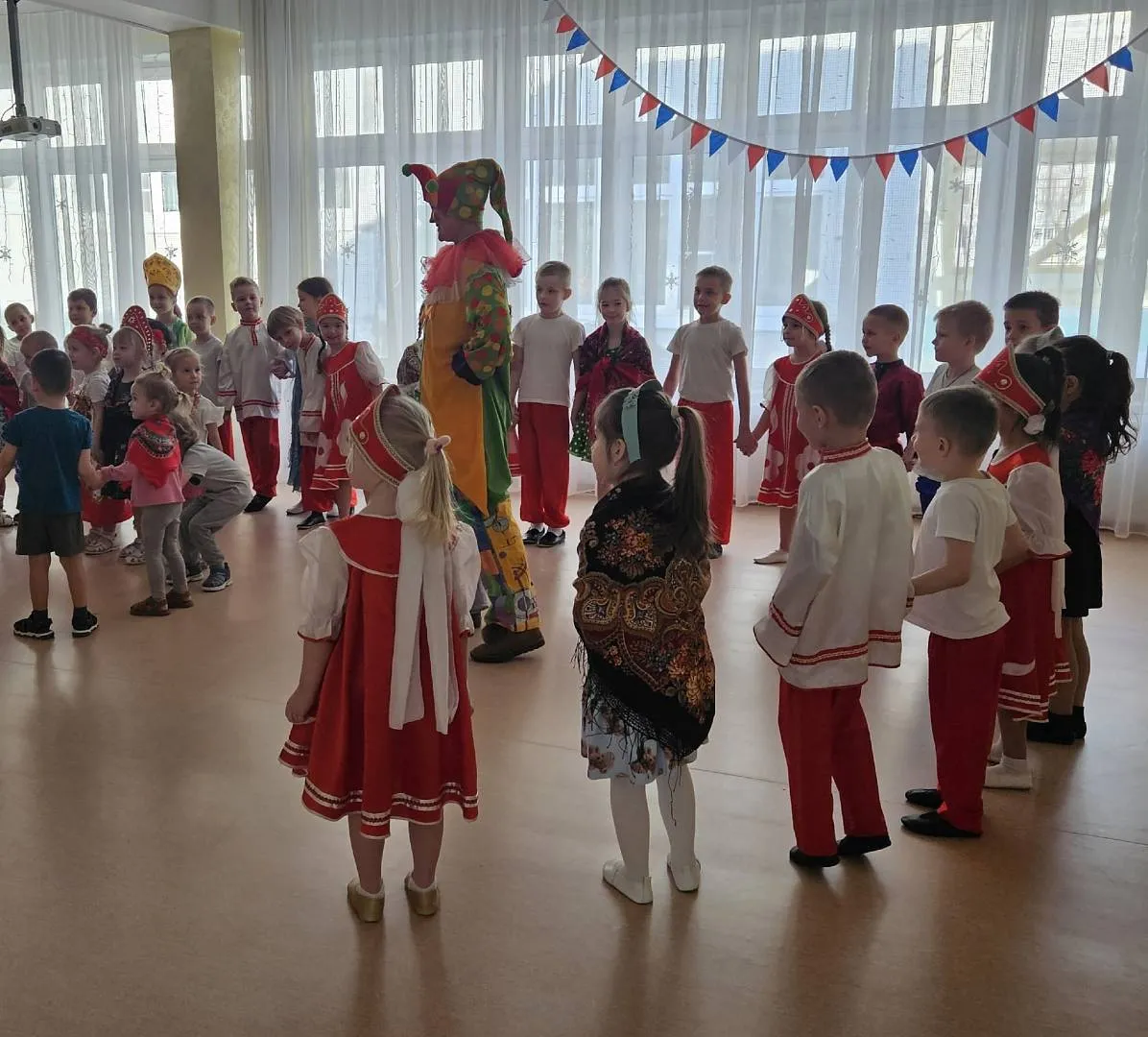 Праздник был наполнен национальным колоритом и энергией. Дети водили хороводы, пели русские народные песни и играли в увлекательные масленичные игры. Главным заводилой, конечно же, был озорной скоморох, который своими шутками и прибаутками создавал атмосферу радости и веселья для всех — и детей, и взрослых. Он не только развлекал, но и рассказывал о масленичных традициях и символах этого светлого праздника.