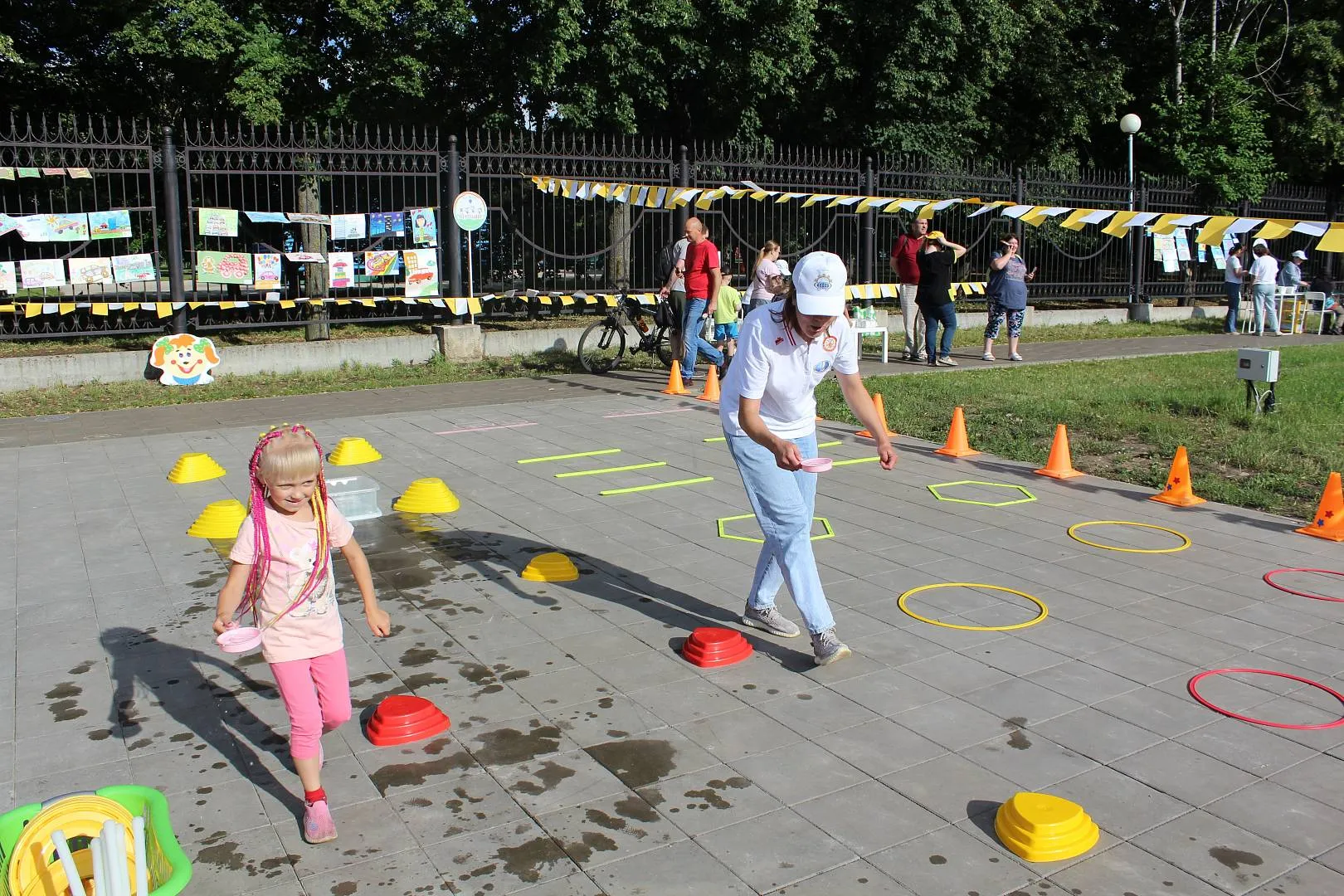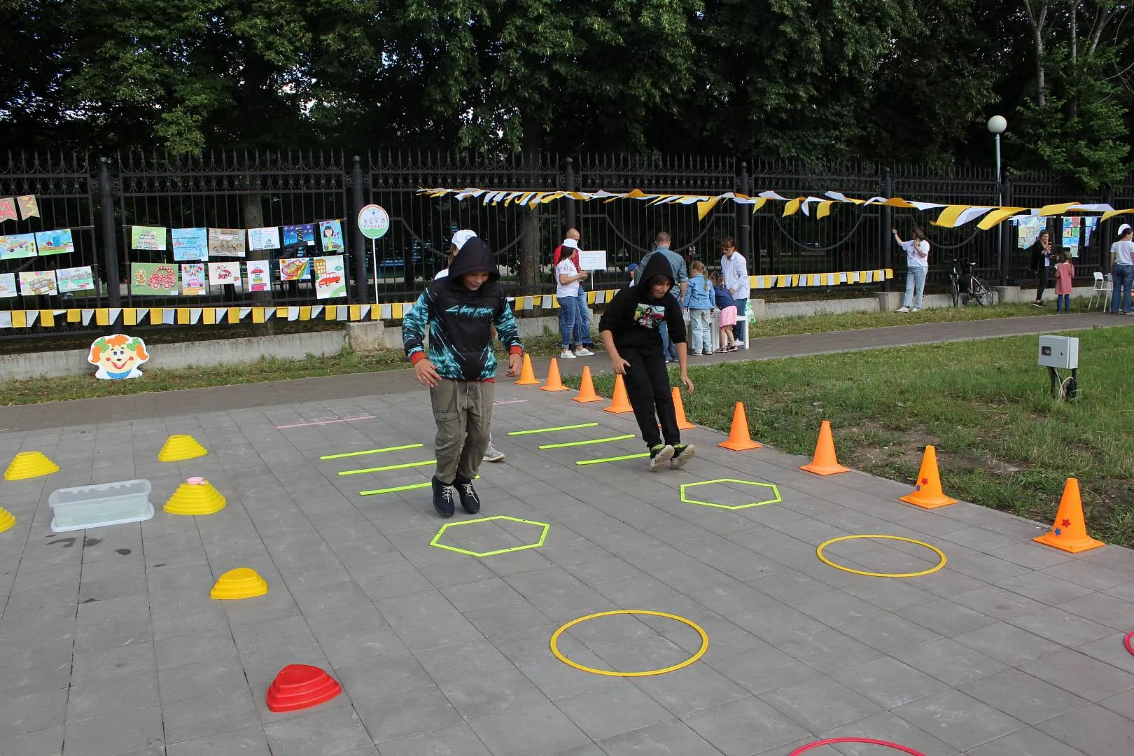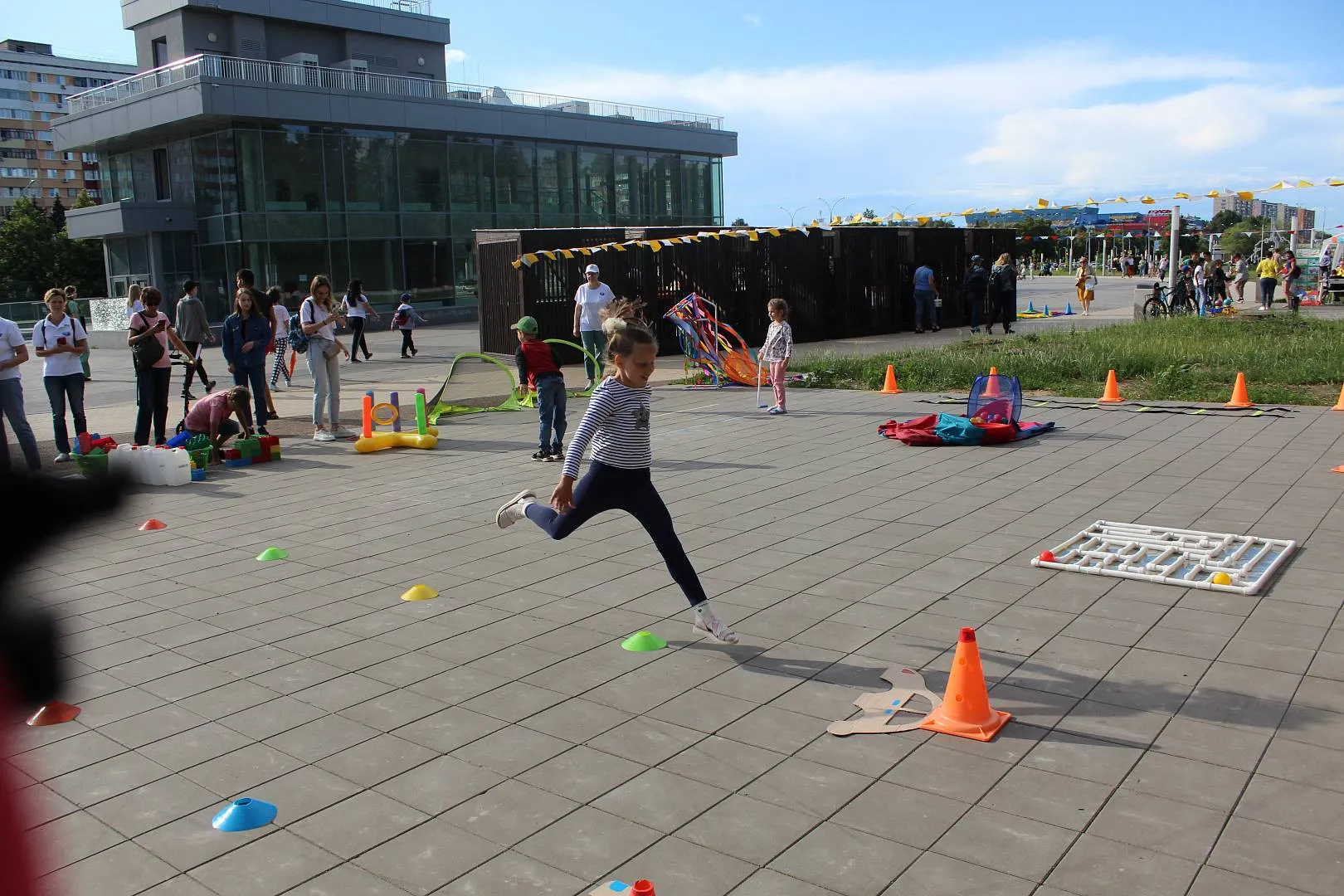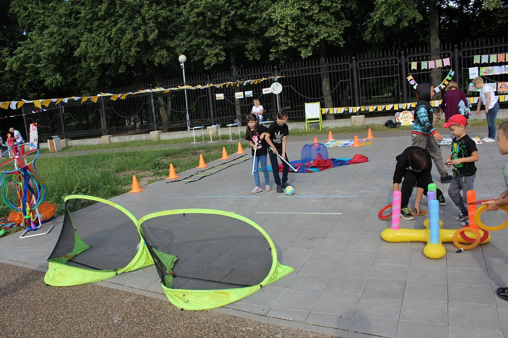 площадка «СПОРТ-УРА!» (флеш-моб, эстафеты, подвижные игры, игры-соревнования, групповые и индивидуальные двигательные игры-упражнения с нестандартным физкультурным оборудованием).