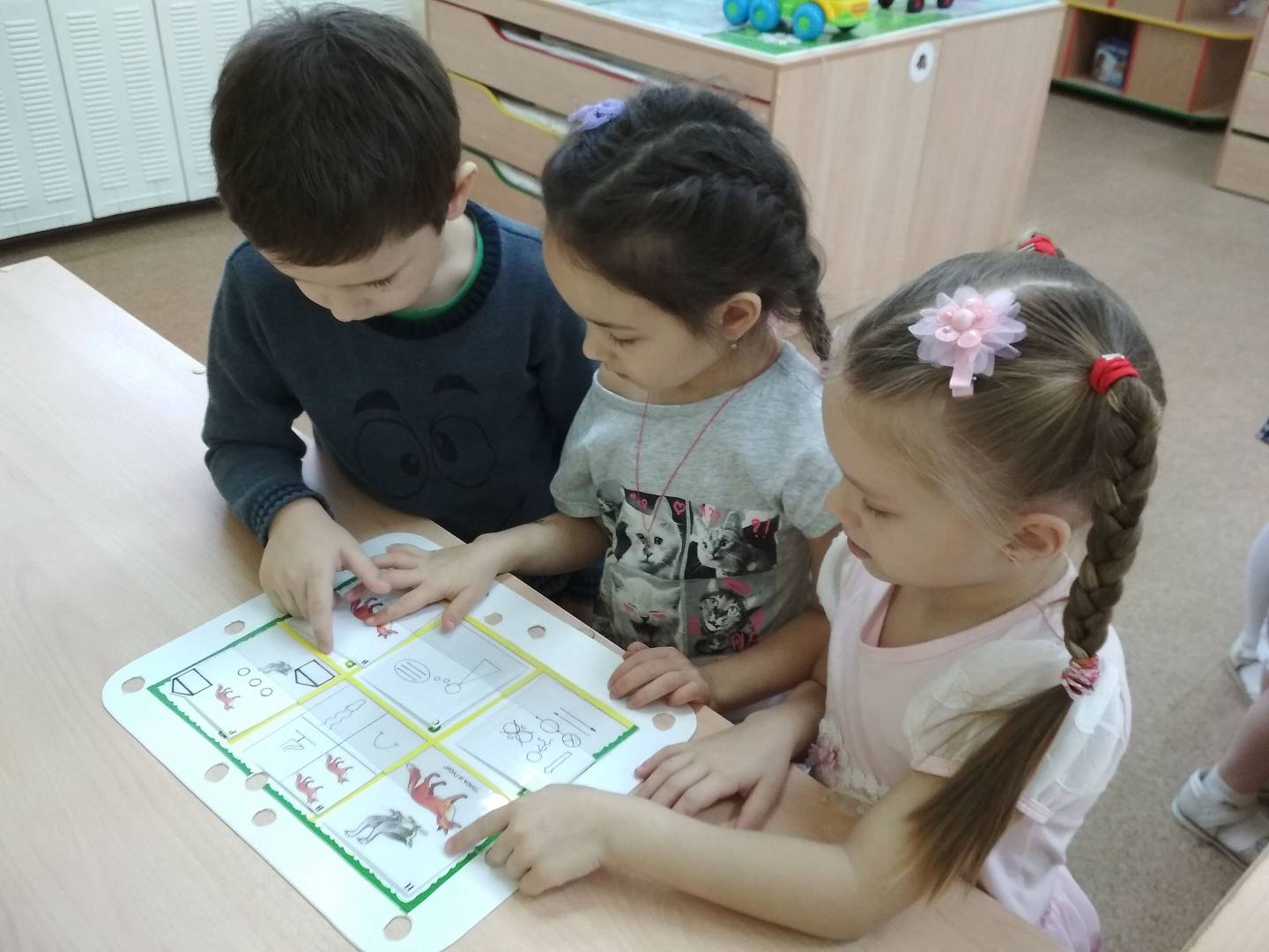 Работу с дошколятами начинаем с 4 - летнего возраста поэтапно. Педагог, используя авторские настольно - печатные игры и игры, разработанные для интерактивной доски, обучает детей способам замещения сначала предметов, затем действий условными обозначениями. Воспитатель разучивает и играет с детьми в подвижную игру, знакомит с ее компонентами, начинает работать с карточкой, постепенно заполняя окошко за окошком. Условные обозначения дети придумывают совместно с воспитателем, а позднее самостоятельно, отбирая самые подходящие. Таким образом, дети постепенно учатся «читать» карточку.