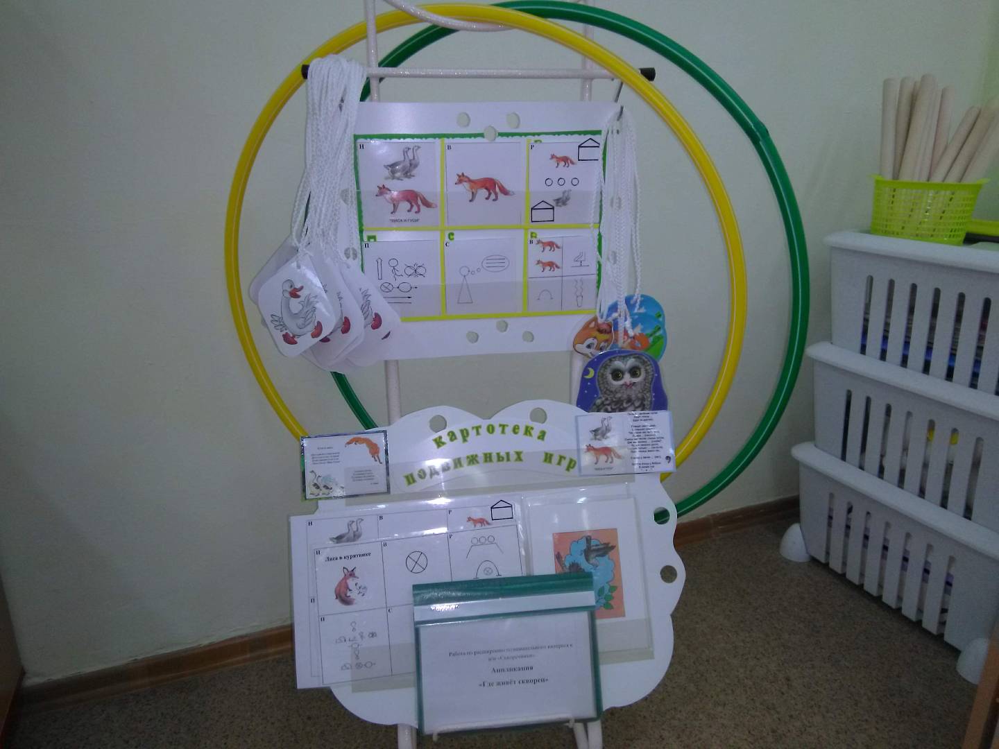 В детском саду разработаны готовые карточки к подвижным играм для детей старшего дошкольного возраста. Они располагаются в групповых двигательных центрах, спортивном зале, на спортивной площадке. Воспитатель знакомит детей с различными способами сбора партнеров -участников игры. К 6 годам дети уже могут самостоятельно собирать участников на игру, выбрав карточку любой, разученной с педагогом игры, совместно ее "прочитать" и поиграть.