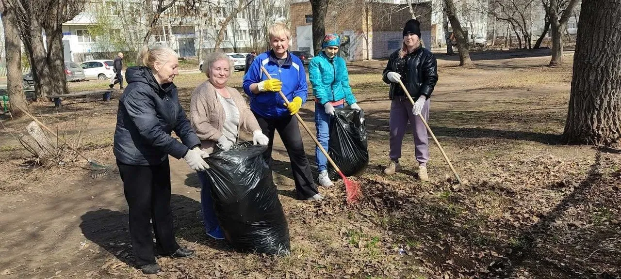 Сегодня в "Златовласке" прошел субботник. Сотрудники вышли на уборку территории детского сада.