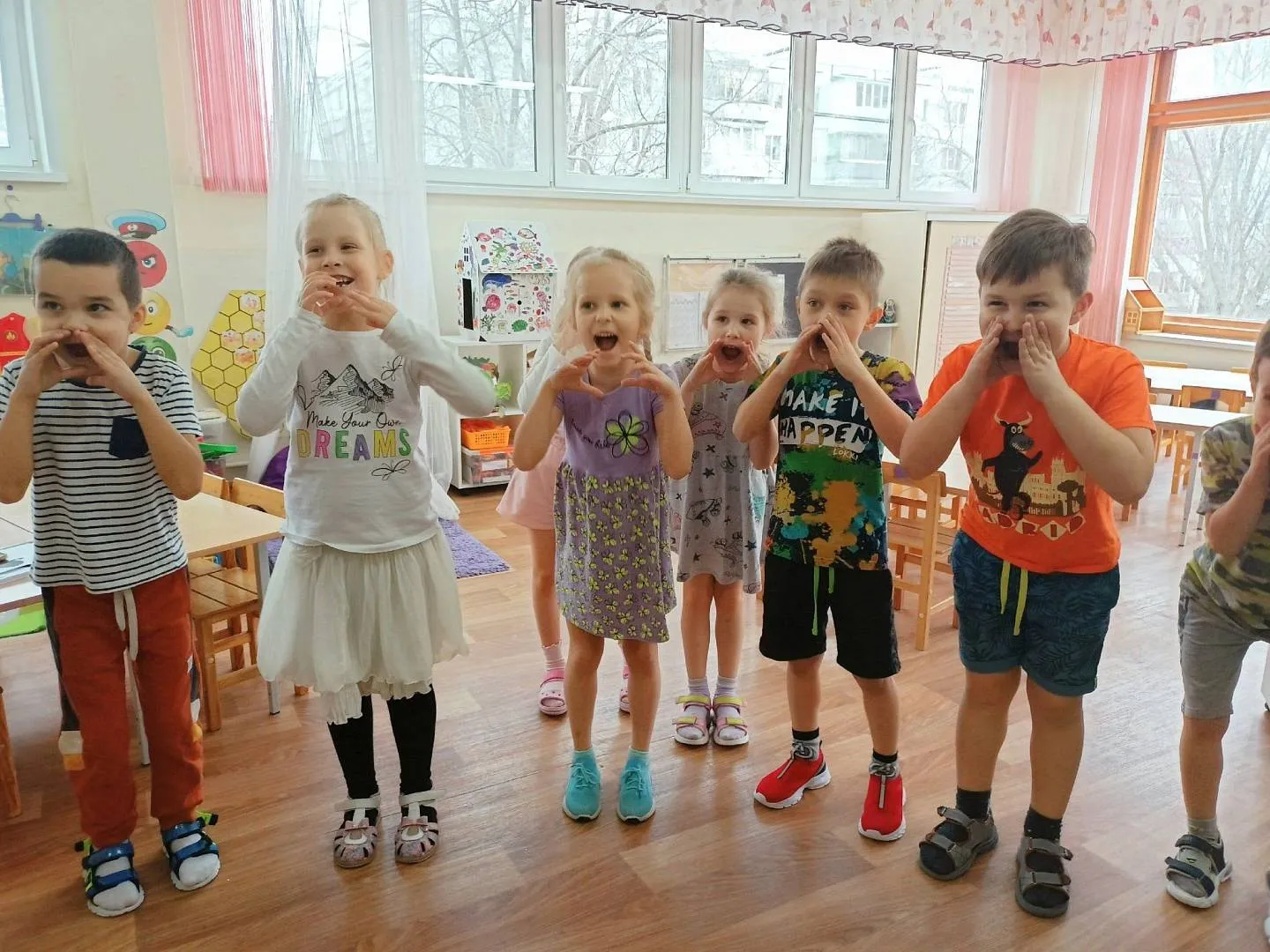 На открытие марафона к дошкольникам пришли Красная Шапочка и Незнайка. Вместе с героями ребята вспоминали какие виды театров бывают, пели, танцевали, отгадывали героев сказок по их тени и даже пробовали себя в роли настоящих актеров. А в завершении герои подарили дошкольникам театральные маски.