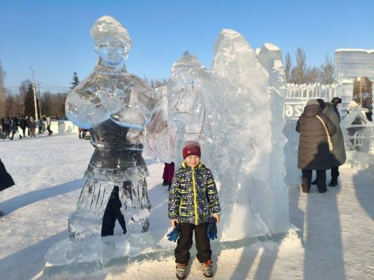 Вместе с родными и близкими они посещали праздничные мероприятия: побывали на новогоднем представлении, гуляли по украшенной ледяными фигурами площади и даже встретили Снеговика.